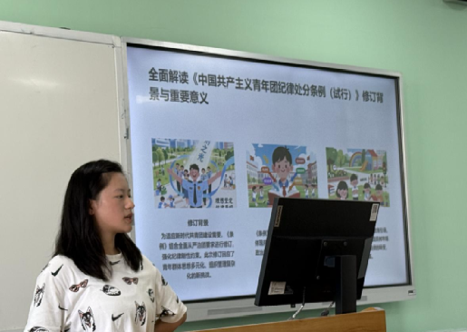 图为5班团支部书记孙楊璐作讲解