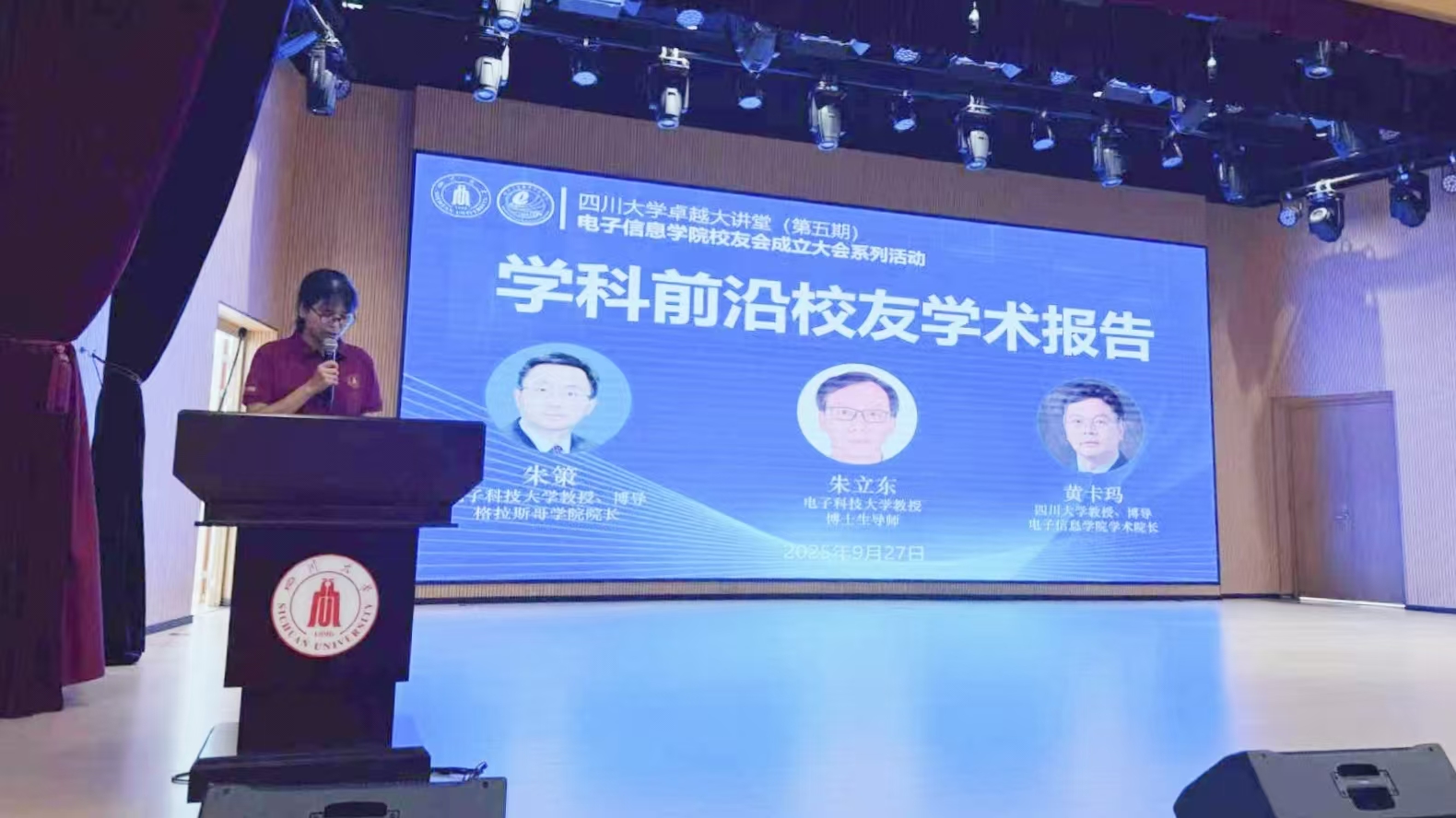 校友会成立大会系列活动之学科发展前沿校友学术报告会,在望江校区文华活动中心报告厅隆重举行。本次学术报告会由学院院长助理汪莎研究员主持,电子科技大学格拉斯哥学院院长朱策教授,电子科技大学朱立东教授,小欧视频