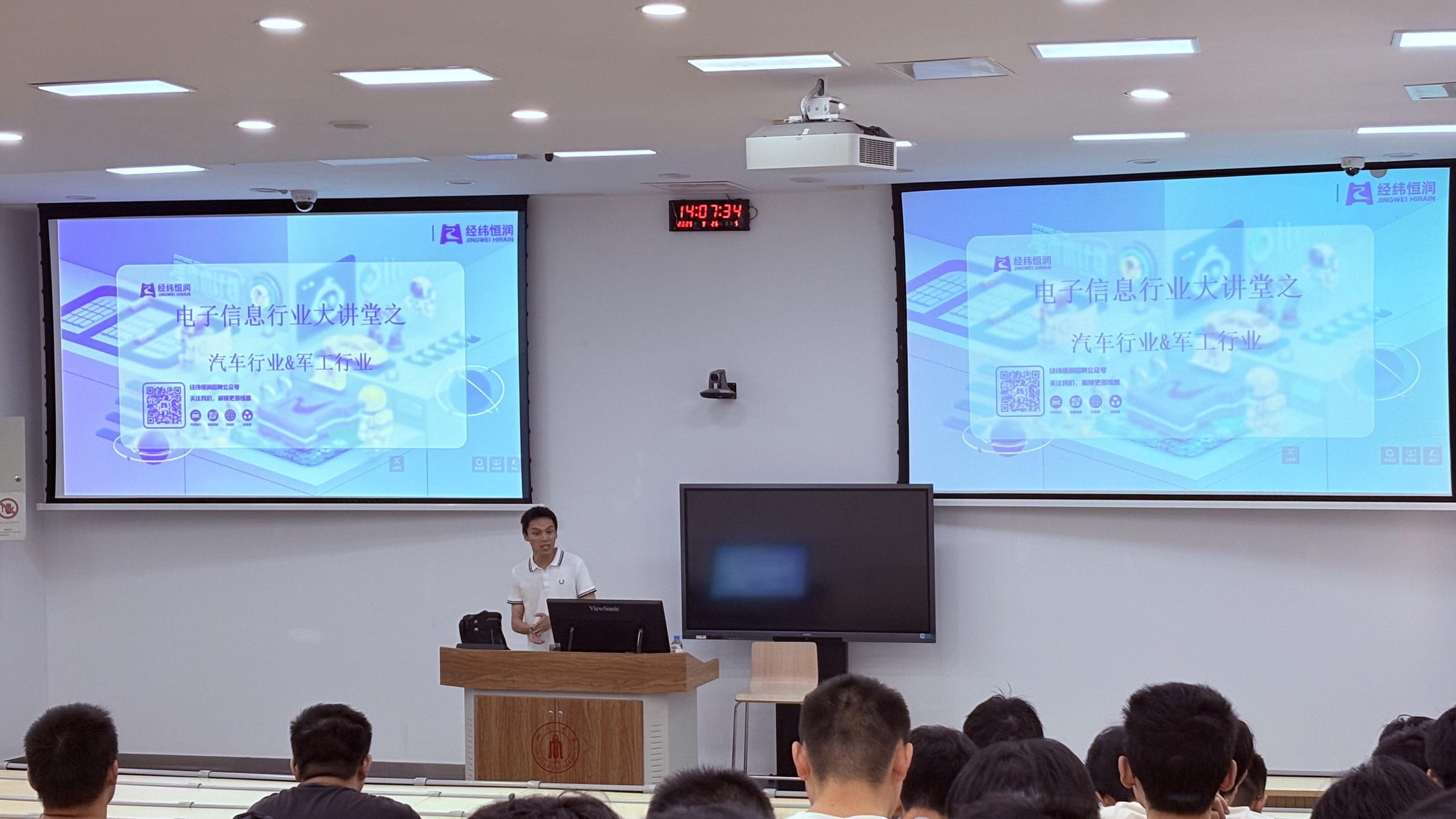 行业大讲堂--汽车和航空,于望江校区基础教学楼C座成功举办。本次活动由就业专职谢老师组织,特邀经纬恒润的张总监担任主讲嘉宾,讲座通过专题报告与互动问答相结合的形式,为学生搭建了与行业专家对话的平台。