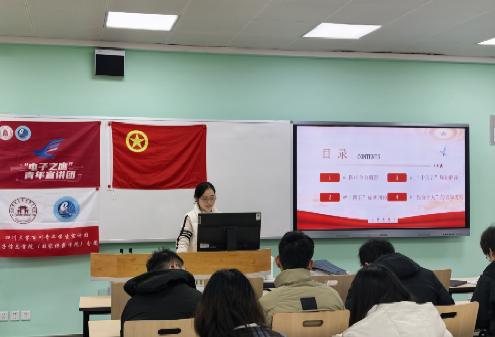 百川青年学生宣讲团电子分团的廖晨曦、王伯澍到场,为同学们作专题讲解。