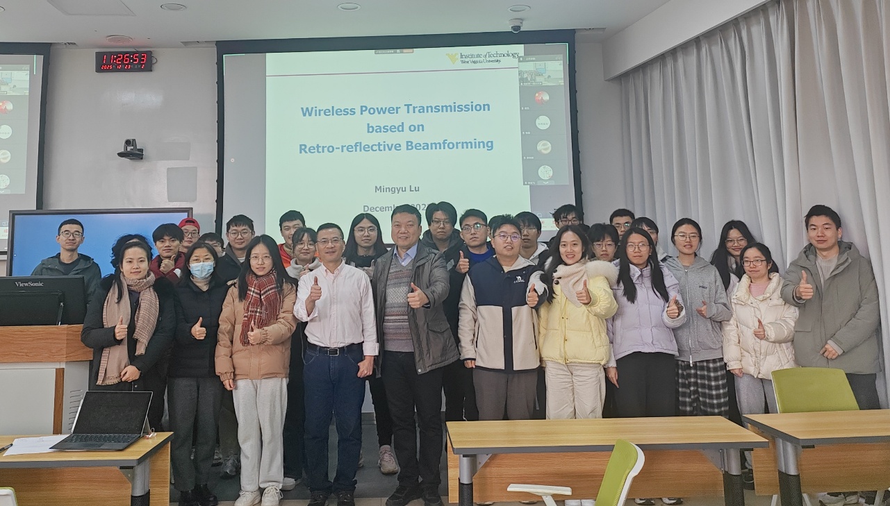 在基础教学楼C102教室成功举办了一场高水平的学术报告。本次讲座主题为“Wireless Power Transmission based on Retro-reflective Beamforming(基于逆反射波束成形的无线能量传输技术)”,特邀西弗吉尼亚大学理工学院电气与计算机工程系教授、IEEE杰出微波讲师计划成员Mingyu Lu博士担任主讲人。