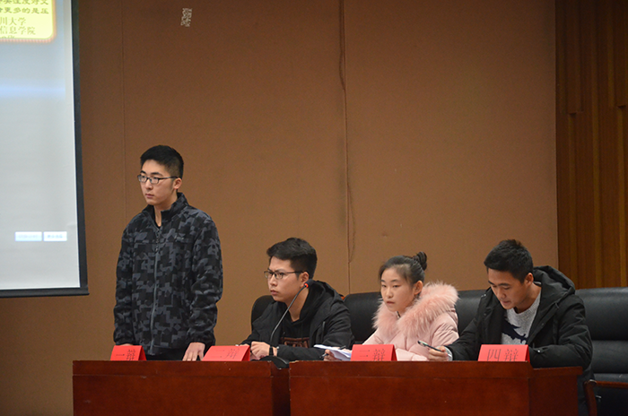 团委学生会学科部和华西药学院联合举办的“明辨青春”班级辩论赛总决赛在江安校区法学院报告厅正式开始。本次大赛特邀电气信息学院辩论队队长刘桢羽同学、计算机学院辩论队队长方巍同学、网络空间安全学院辩论队队长王玥璇同学、化学工程学院辩论队队长潘怡如同学、公共卫生学院辩论队队长魏海云同学、华西基础医学和法医学院辩论队队长何嘉立、法学院辩论队队长樊一江同学担任本次比赛的评委。