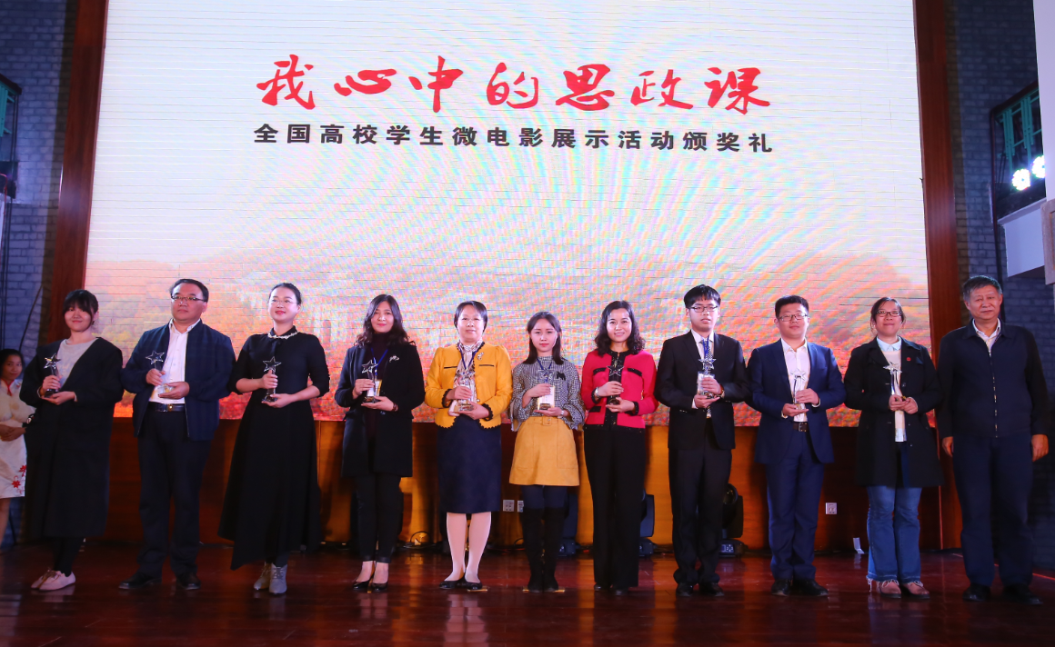 15级本科学生蒋术语、林子晋、何英俏、吕松阳、袁明亮,外国语学院的罗庆益和文学与新闻学院的苏婧、董心悦创作的作品《思说记》经过激烈角逐,从全部参赛的200余部作品中脱颖而出,荣获全国一等奖和最佳创意奖。教育部社科司司长刘贵芹,四川省教育厅宣思处处长罗杉杉出席了本次颁奖礼。我校肖孟夏老师和作品主创代表蒋术语同学参加了颁奖典礼。