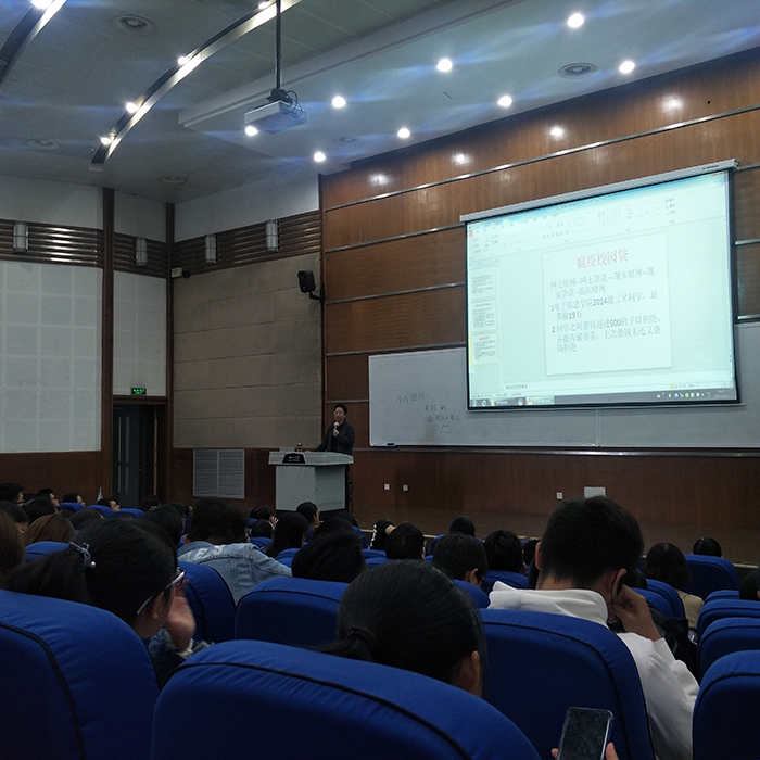 的同学作为校园贷的实例,仔细讲解了校园贷的流程,从各种细节解析校园贷的迷惑性,告诫同学们一定要远离校园贷并及时留意身边的疑似校园贷事件。