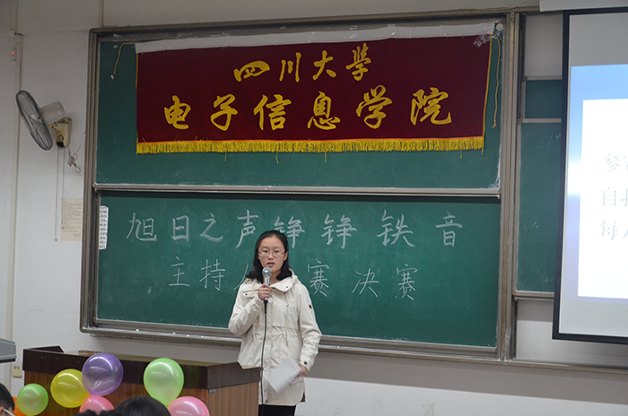江安校区第一教学楼B203教室举行。初赛当天,有广播站成员、学生会主席团成员、往届优秀选手等担任评委。15位选手经过自我介绍、绕口令表演、抽词即兴演讲等环节的激烈比拼,最终由评委打分并选择出八位选手进入决赛。2017年10月29日,主持人大赛的决赛如期在江安校区第一教学楼B303教室举行。决赛吸引了小欧视频
