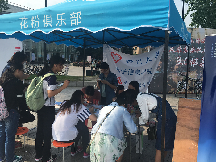 首先,为了能让同学们能快速找到活动,负责人安排了几个人在青春广场上派发活动传单,吸引参与者。不一会儿,摊位前就围满了好奇的同学们。在这个思念家乡的日子,同学们的脸上都写着对家的想念。志愿者们都热情地主动上前和他们聊天。志愿者们热情又耐心地为同学们解释了活动的流程。活动流程很简单,志愿者们提供给参与者们一张四川发布联合四川邮政、成都熊猫邮局、E网邮情、鹏博的家等平台提供的明信片,同学们只需要写一封家书,即把自己想对家里说的话都写在明信片上,然后四川发布就会免费帮同学们邮递出去。同学们都积极参与,把祝福写进明信片。他们有的希望父母身体健康,工作顺利;有的希望家里快要高考的弟弟妹妹好好学习,考上一个好的大学;有的给父母承诺一定会好好学习,努力工作,不辜负他们的苦心。但更多的是向父母表达自己日日夜夜对家的思念。快乐的时光总是过得很快,下午四点左右,这次活动就接近尾声了,志愿者们看着满满的一箱写满明信片,结束了一天的志愿工作。
