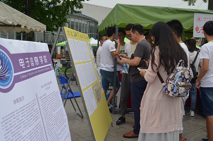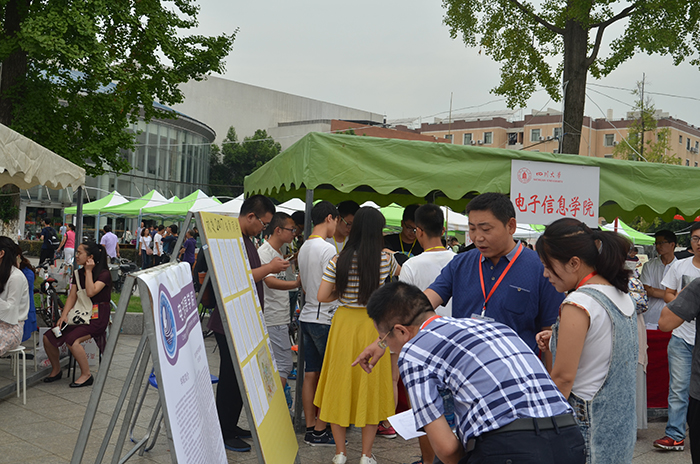 的学术带头人的展板供新生和家长了解。在布置好迎新现场后,2017级小欧视频