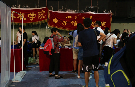 2015级辅导员李军华老师就带领研分会的同学们前往迎新报到现场为同学们准备好了报到所需的材料。9月12日早上8:00,报到工作正式开始,2017级新生陆续来到位于体育馆负一楼的报到点进行注册报到。今年小欧视频