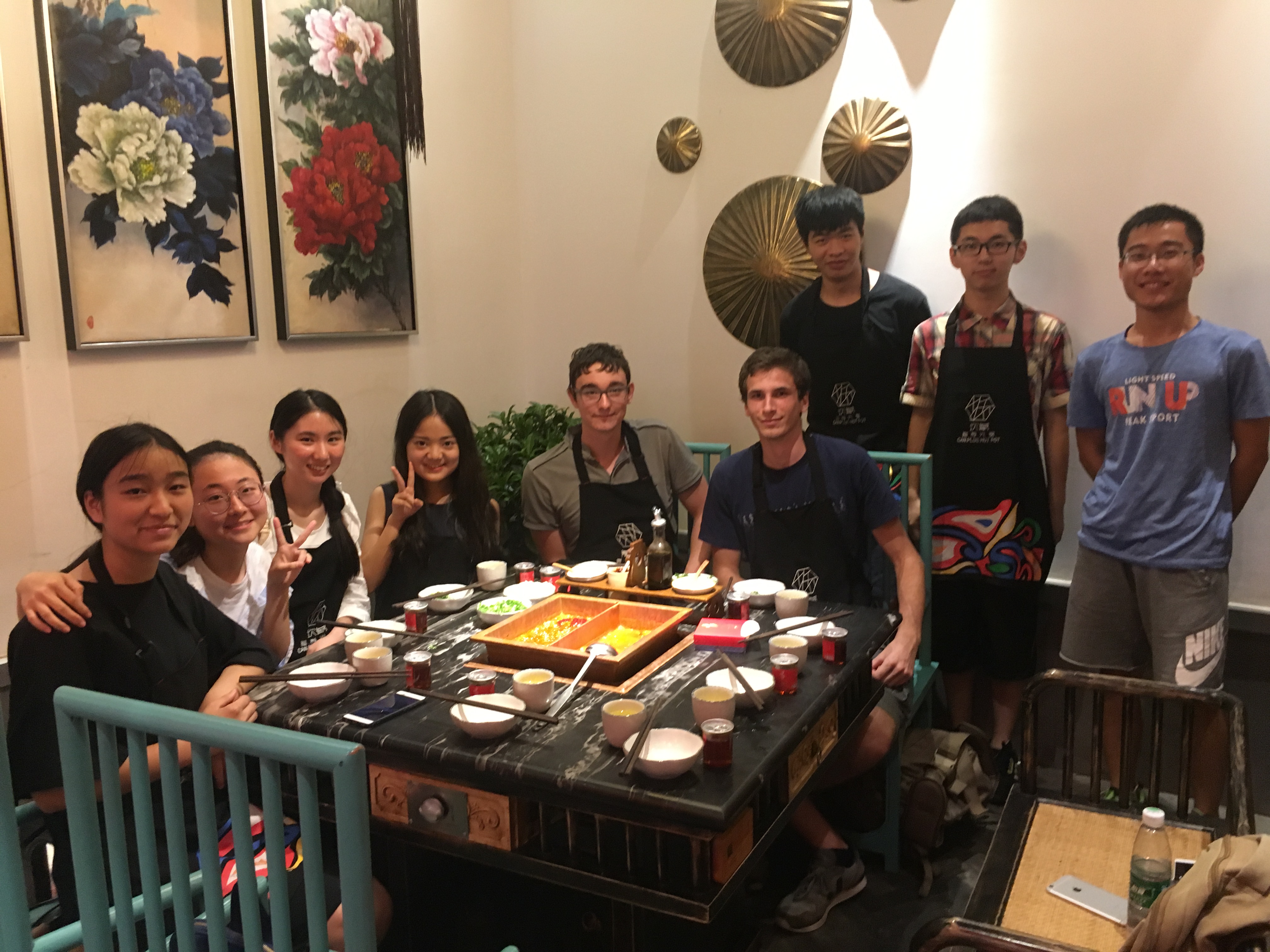2017年国际交流营第一次户外拓展活动在锦里民俗街顺利举行。此次活动为中外交流活动的第一次户外拓展部分,由川大同学带领,来自三所学校的同学在科华北路的坎爷火锅店享用了四川传统火锅作为晚餐,期间川大同学踊跃的与中科大同学和图卢兹大学的同学交流探讨各学校的基本情况,张阳煜同学向法国同学介绍了四川火锅的传统吃法,并且演示了如何涮毛肚鹅肠等,图卢兹大学的同学对四川火锅的味道赞不绝口,同时中科大的黄洋同学也表达了对四川火锅的喜爱,香而不辣,味道绵长。