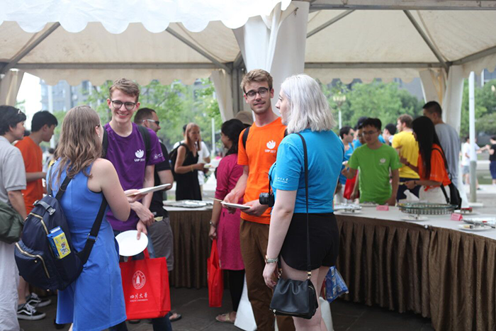 江安校区体育馆盛大开幕。本次开幕式,来自美国、英国、法国等30个国家和地区的142所国际知名高校和科研机构的165位专家学者,来自24个国家40所高校的500多名外籍学生参与其中,他们与川大师生一起,共同度过了一个欢乐的夜晚。