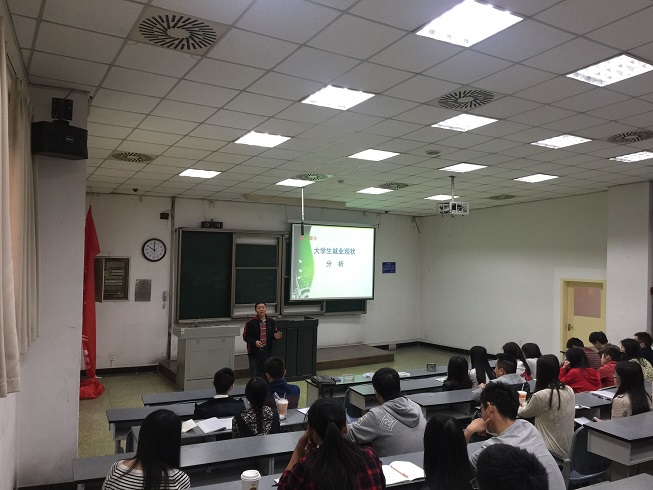 最后,学院陈笃海书记为同学们进行了就业现状分析。陈书记分享了近几年来毕业生就业数据和概况,结合当前社会经济发展大环境和国家经济状况,分析了就业压力。同时给出了同学们就业时的优势和自由性。另外,就我们学校和专业的特点,陈书记进行针对性分析和讲解,建议同学们端正就业态度。面对企业规模、区域选择等问题,要以发展的眼光看待和解决。陈书记举了很多历年成功就业和就业不理想的例子,切实地向同学们传递了就业经验和教训。就双创环境下的创业问题,陈书记也给出了建议。现场同学们反响热烈,纷纷表示受益匪浅 .