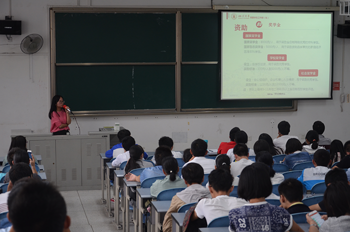 2016级学生资助政策宣讲在江安校区综合楼C座505教室圆满完成。学工部资助中心刘程老师以及2016级辅导员陈晓娟老师和陈林老师参加了本次宣讲。