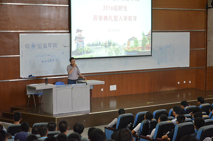 学院的专业,培养目标和就业方向,使同学们对自己的专业有了更深一步的了解。周院长还介绍了本科生培养模式与方法以及创新人才培养工程等,并详细说明了我们学院要学习的各类课程及需修满的学分。通过周院长详尽的介绍,同学们对学院的科研条件学校资源等也有了更多地了解。然后,陈书记上台发表了讲话使新生们对大学生活充满了期待,并且对大学生活的规划有了初步的了解。最后,陈林老师讲解了接下来几天新生的工作。此次新生入学典礼在同学们热烈的掌声中顺利结束了。