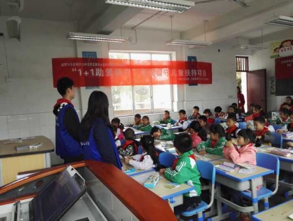 青春广场集合出发,13时来到青少年空间进行简单的准备工作,14时30分左右到达目的地双流县永安镇红花小学。志愿者们协助老师们布置好教室,等待同学们的到来。