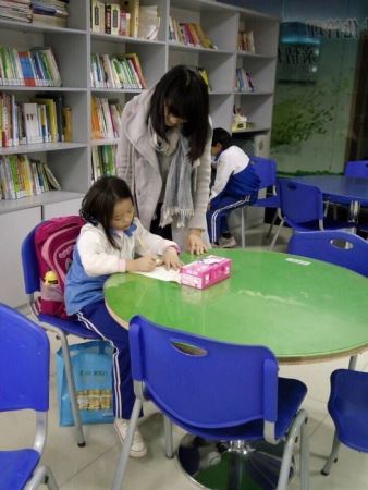 江安校区西南门集合后,在16时30分左右分别抵达了三元社区和新街社区两个服务站。志愿者们与服务站的老师打过招呼之后,同学们也陆续来到了服务站。在老师的组织下,同学们迅速地进入了学习的状态。志愿者们也开始为同学们进行课后作业的辅导与答疑。