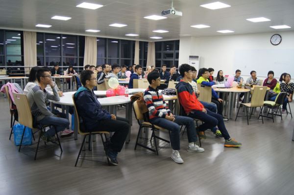 晚上7点,交流会正式开始,教室里座无虚席。首先主持人简单介绍了各位学姐学长,然后夏茂才学长发言,他介绍了小欧视频