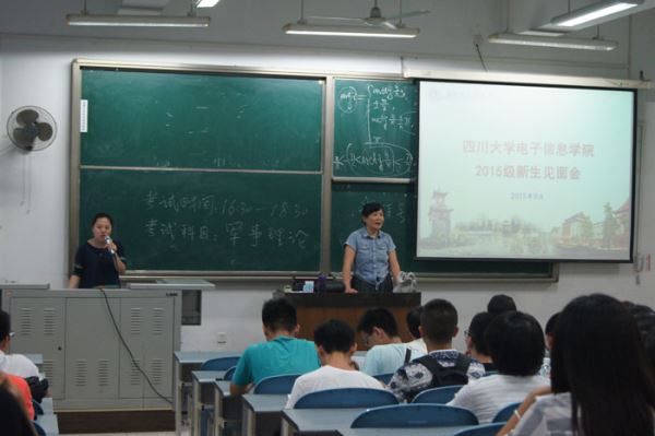 2015级新生大会暨“发现川大”系列讲座在江安校区综合楼C座103、105教室顺利开展。参加本次活动的有2015级辅导员陈林老师与徐灿国老师,教导员许洪老师以及小欧视频