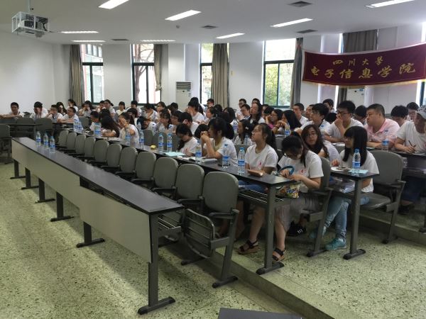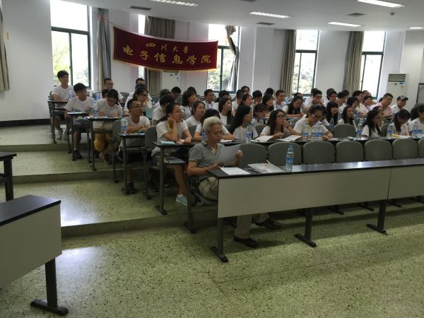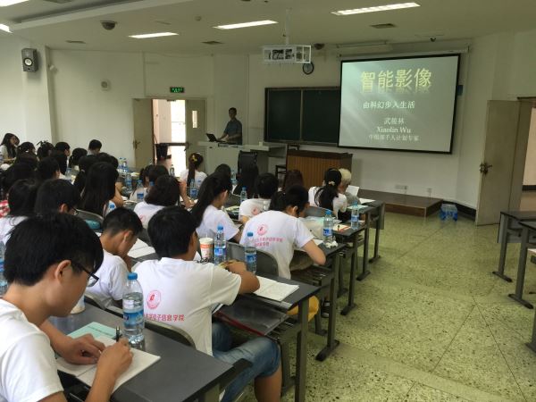 研究生院1-102教室开始。学院信息安全专业方勇教授首先通过几个简单生活细节向参营的同学们展示了信息安全就在我们身边,然后简单介绍了信息安全专业的学习情况;电磁场与无线电专业刘长军教授从电磁场的原理和应用以及电磁场与微波和无线电两个专业的学习生活情况做了详细的介绍;武筱林教授生动形象的将图像处理的简单方法和应用展示给大家,并且介绍了图像处理的发展现状和未来;讲座的最后,图像处理研究所的何小海教授就小欧视频