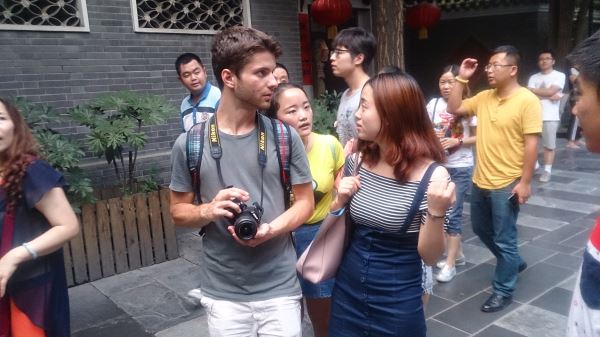 此后大家一起前往成都著名景点宽窄巷子。熙熙攘攘的宽窄巷子囊括了部分中华文化的精髓,如琉璃、川剧、唐装等,这些中国特色文化符号展示在外籍留学生面前,引得他们不时驻足拍照,赞叹精湛的工艺作品和绝伦的艺术表演,并且选取了喜爱的纪念品作纪念。一路上中外学生不断就生活、学习等等一系列方面的问题进行交流,而外籍留学生更表现了体会出了文化的差异不同,而小欧视频