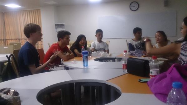 部分中外学生在综B505成功举办“国际交流营”的第一次文化交流活动,同学们互相交流了想法,获益匪浅。