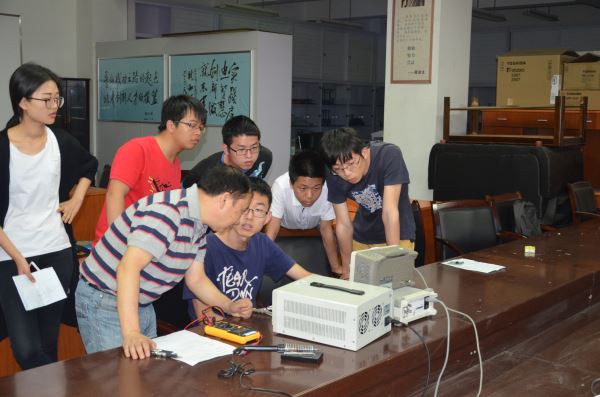徐家品品教授、傅友登副教授、华伟副教授、夏文龙老师、刘俐老师以及李运国老师参加了本次选拔测试,测试的主要内容是单片机编程和电路制作,每个题目的设定的完成时间为4个小时。