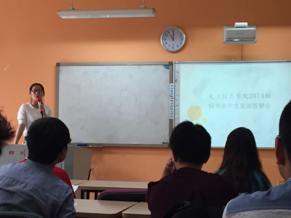 学生社团构成、学院望江校区、江安校区办公室地点以及联系方式、各专业教学计划。见面会上老师特别提醒转入同学注意本学期6月的选课,结合本专业教学计划核对课程替代和缺课补课情况。见面会最后,吴老师耐心回答同学们提出的问题。在见面会结束后,同学们与自己新班级的班长团支书交流沟通,详细了解了班级的情况。