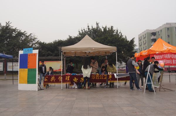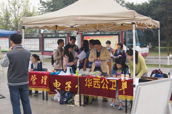 、华西临床医学院、华西公共卫生学院、公共管理学院四个学院权益素拓部举办的四院联合315维权周系列活动于早上8点正式在青春广场拉开帷幕。
