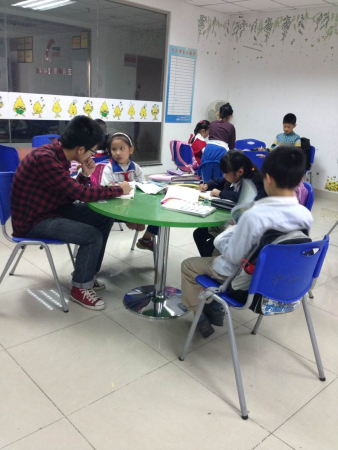 下午4:40分,志愿者们到达阿福童之家,受到了孩子们的热烈欢迎。志愿者们迅速分工,开始耐心地辅导孩子们。志愿者们分别对孩子们进行了词语听写,题目讲解的辅导。辅导过程中,志愿者们以引导为主,解题为辅,尽量让孩子们自主完成作业,营造出轻松愉快的气氛。18:00时,孩子们均完成了当天的学习任务,便邀请志愿者们一同观看了电影《查理与巧克力工厂》。18:40后,家长们陆续到达把孩子们接走,志愿者们在孩子们全都离开后便离开了阿福童之家。