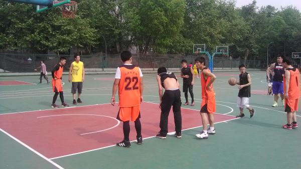 电子队在东区篮球场与材料学院展开了一场激烈的友谊赛。最后以44:24的大比分优势取得胜利。