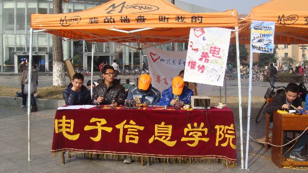 “腾飞”青年志愿者服务队和电子科技园在青春广场顺利举办了“维修小电器献爱心”活动。