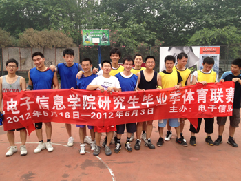 院队队员,可以说两队水平势均力敌,就看临场发挥了,光电系代表队开场打得有点紧,被图像所队打出了一个6:2,,光电系稳住手脚,逐步将比分追上,并且在第二节反超了比分。图像所队稳扎稳打,并没有被拉开比分。比赛随之进入了胶着状态。两队为了冠军拼尽了全力。最终经过一个半小时的比赛,图像所代表队以74:68战胜光电系。获得本次毕业体育联赛篮球对抗赛的冠军,为图像所在本次体育联赛中获得优秀总成绩添加了重重的一颗砝码。