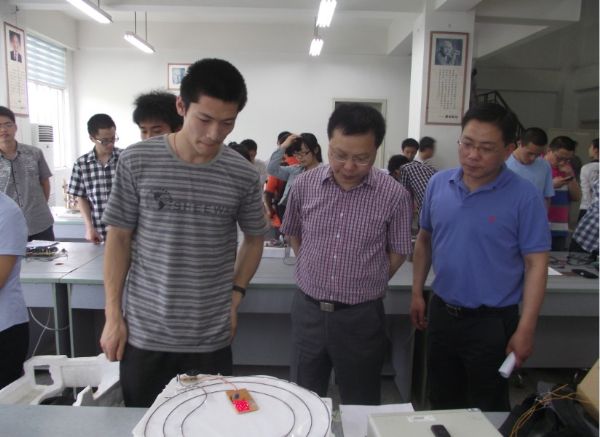 创新实践的优良作风。之后,由陈经理致辞,他以洛克菲勒改进焊接机为例说明了创新要能够得到效益,并鼓励大家多把创新意识转化为动手实践上来。最后,黄院长上台发表了讲话,他希望大家努力学习,提升自己的创新能力意识,并对下一届“锦电杯”科技创新大赛做了简要说明,鼓励大家积极参赛,多动手多实践。至此,本届锦电杯颁奖仪式圆满结束。与此同时,下午两点半望江校区创新实验室进行了获奖作品演示。