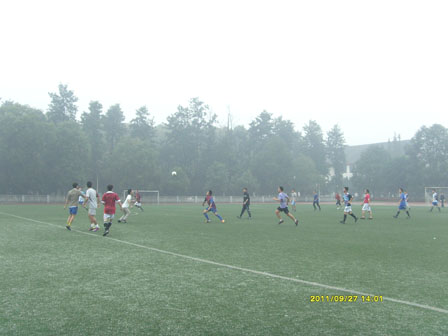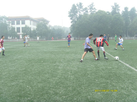与制造学院研究生新生顶着蒙蒙细雨在东区足球场展开了一场激烈的友谊赛。