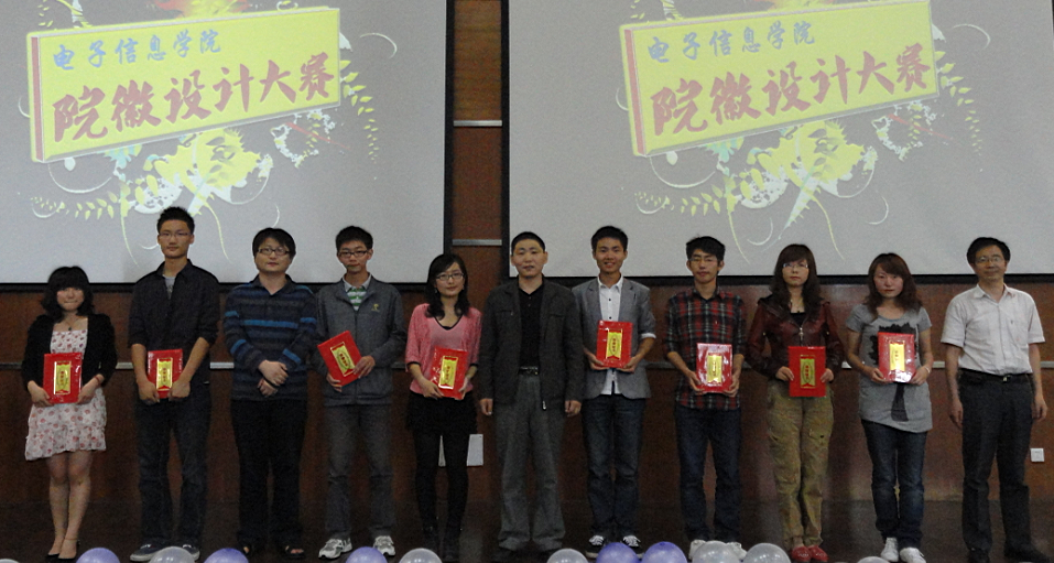 校徽相呼应,同时,选手提供了多种色调搭配可供选择,方案具有极强的可操作性,选手在幻灯片展示环节中的表现也十分优异,幽默而又专业的描述使得在场的观众都能最大限度了解到作者的创作意图,故给予其最高评委得分。比赛展示环节结束后,学生会宣传部10级干事陈淩驰即兴演唱了一首《说谎》,将活动推向高潮。最后,学院领导陈笃海老师上台致结束辞,在结束辞中,陈老师传达了学院领导对这次活动的重视,同时盛赞了参赛选手的表现。陈老师称此次活动是“科技与艺术的结合”式的一次好活动,并对全校同学的积极参与表示感谢。中午十二时许,活动在主持人的闭幕词以及观众们热烈的掌声中圆满落幕。