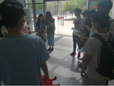 在活动开始之前,活动负责人将参与活动的同学分成两人一组,共十六组。活动一开始,各组同学在起点集合,工作人员给参与同学分发游戏规则卡,并给参与游戏的同学仔细地讲述了一遍游戏规则。工作人员宣布活动开始之后,各组同学首先到达综合楼C座开始游戏闯关。随着时间推移,各组同学不断完成闯关,最终到达最后关卡完成挑战。
