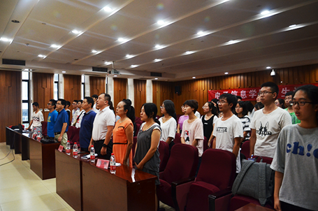 本次记者团成立大会在激昂的国歌声中拉开帷幕。会初由陈笃海副书记致辞并宣布记者团成立。陈笃海副书记阐述了成立记者团的目的和记者团同学承担的任务,并指明宣传报道应围绕党的建设性的伟大工程和世界一流大学建设性的伟大事业来进行。随后,雷印杰副教授为此次大会致辞。雷印杰副教授就目前同学们论文写作存在的问题展开,并表示希望同学们锻炼写正式文字的能力,踊跃投稿,提升文字写作水平。之后,由陈炳周副教授宣读电子学生记者团职务安排分工,由电子学生记者团团长黄江岚同学宣读电子学生记者团章程。紧接着,在庄严的气氛之中,由陈炳周副教授、李军华老师、陈林老师为电子学生记者团学生代表颁发聘书和记者证。聘书和记者证是记者团成员身份的象征,老师们对这些同学们都寄予了深切的期望。