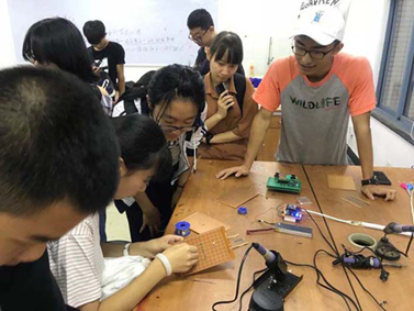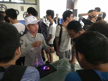 同学们首先在第二基础实验楼A111室欣赏宣传部的作品展览。宣传部的部长们向新生们展示了他们制作的立体海报、平面手绘等精美作品。同学们兴致勃勃,纷纷拿起画笔动手尝试绘画、喷漆,来体验宣传部的工作。从宣传部出来,同学们进入了会议室A117室。行政部部长们对新生的到来表示了热烈欢迎,并手把手教授他们焊接电路的方法。新生们积极体验,从中感受电焊的奇妙,现场气氛十分活跃。接下来,副主席吕颂与外联部的部长们一起,向同学们介绍了科技园举办的活动概况,使同学们对科技园的活动有了初步了解。最后,在技术部部长的带领下,同学们进入了A116室参观技术部的成果展示。船模型、机械臂、电动车、流水灯、自制小音箱等一系列科技成品让同学们大开眼界,发出阵阵惊呼。在技术部部长们的指导下,同学们亲自动手尝试进行操作,感受到科技的奇妙力量。
