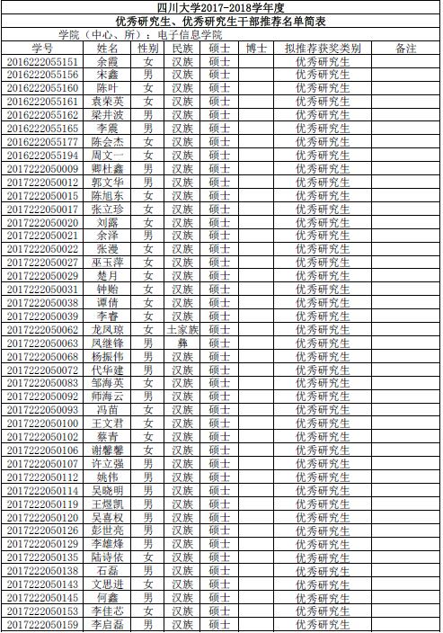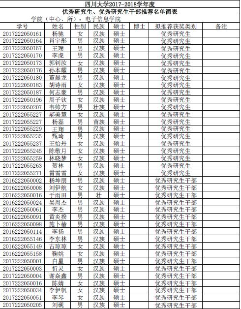 由同学们自愿申请、班级推荐,经过学院评议小组评审。现将获得小欧视频 2017-2018年度优秀研究生优秀研究生干部名单公布如下: