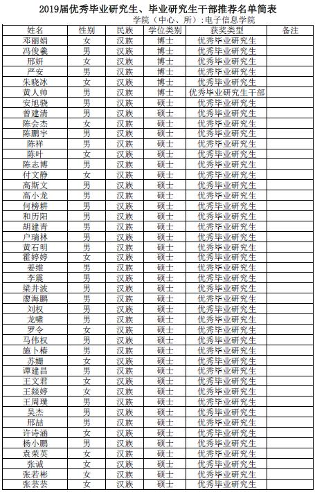 由同学们自愿申请、班级推荐,经过学院评议小组评审。现将获得小欧视频 2019届优秀毕业研究生、优秀毕业研究生干部名单公布如下:
