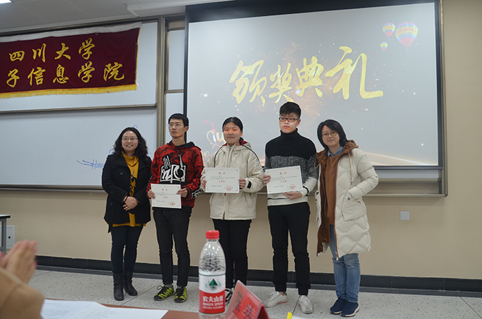 活动伊始,主持人简单介绍了本次活动的流程。之后,便是电子科技园POV协会(第一组)学术型社团指导教师李玮副教授发表讲话。李玮副教授谈到:创新,是推动国家发展,推动社会发展的重要动力。国家有了创新,才有持续发展的源源不断的动力。接着,电子科技园行政指导教师,学院分团委书记李运国老师也发表了讲话。李运国老师首先对参赛选手表达了赞许,他说到:本次比赛既是为了选出具有创新特色的概念产品,也是为了锻炼同学们敢于创新,勇于创新的拼搏精神。李运国老师强调道:比赛不应该仅仅以获奖为目的。获奖固然重要,但在比赛过程中的收获同样重要。所以李运国老师鼓励同学们多多参赛,在比赛中锻炼自己!交流会环节结束后,便到了最激动人心的颁奖环节。主持人宣布获奖同学的名单,李运国老师,李玮副教授等嘉宾为获奖选手颁奖,并合影留念。台下观众纷纷鼓掌,表达自己对获奖选手的祝贺。活动最后,参与活动的全体人员进行了合影,为本次活动画下了完美的句号!