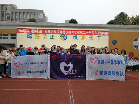 “腾飞”青年志愿者服务队、化学学院“阳光”青年志愿者服务队以及材料与工程学院“源泉”青年志愿者服务队协办的“关爱特殊儿童,助力生命奔跑活动”活动于2018年12月6日星期四在成都市双流区特殊教育学校举行。