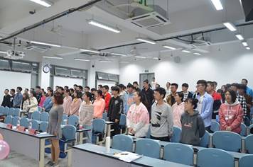 行课于八点半准时拉开帷幕。首先,全体成员起立,奏唱团歌。2018级团员们用歌声展现他们蓬勃的朝气。随后,陈林老师以“学生干部的自我修养”为主题,简述了各位优秀的学长作为学生干部为同学们服务的同时刻苦学习,提升自己,树立了优秀的榜样的真实案例。这些榜样们在工作的同时,学习和竞赛也丝毫没有落后,无论从思想还是从行动上都在努力前进。陈林老师强调到,担任学生干部不是为了功利,而是为了锻炼自己能力,为以后的路打下良好基础,引领同学们之后的发展。同时,陈林老师列举了大量数据,向大家展示了学生干部的重要性,以及作为学生干部所需面对的严峻挑战。陈林老师教导同学们,在努力提升自己的同时,应有志愿服务他人的意识与愿望,引起了同学们的积极响应。