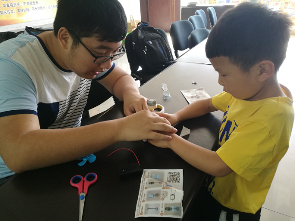 这一次小手工是电动小风扇,上午8点志愿者们集结在一起,出发前往新街社区。不一会儿,志愿者们就到达了新街社区,在小朋友们到来之后,志愿者和小朋友们自由组合,每一组的一名志愿者带领两位小朋友制作电子小手工。志愿者先向小朋友讲述了制作过程,然后就让小朋友们自己动手制作。小朋友们制作的时候遇到问题后,志愿者便从旁边指导,活动氛围活跃。时间过去没多久,在志愿者们的帮助下,小朋友们成功制作出电动小风扇,他们脸上纷纷露出了灿烂的笑容。在小手工制作完成之后,小朋友们和志愿者分享了成功的喜悦,活动室里充满了欢声笑语。这次活动不仅增强了他们动手能力,也让他们学会了互相帮助,有了一个愉快的周末。