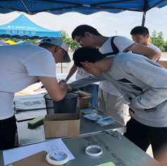 活动开始之前,志愿者们完成了物资、活动材料、海报的准备。活动伊始,志愿者们向来往青春广场的同学们介绍了活动目的与活动的流程,吸引同学们来摊位了解垃圾分类的活动。、