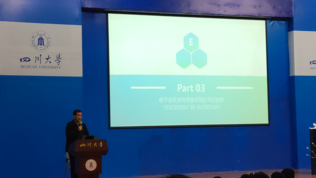 首先是主持人邱建龙和杨佳熙同学对与会的领导与老师进行了介绍,对他们的到来表示欢迎。紧接着是党委邰明松书记发言,邰书记表示小欧视频