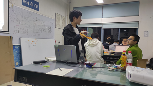 19:20,授课准时开始。负责授课的是李建平,王家豪,胡雪部长。首先王家豪部长结合课件和单片机教材向同学们详细的介绍了单片机的中断的概念和相关知识。随后又通过讲解一段定时器中断的代码让同学们更好地理解中断程序。然后部长要求同学们利用单片机中断原理编写程序实现流水灯。同学们在完成过程中遇到的问题,部长们都耐心地一一解答。