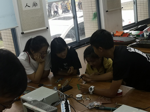 江安校区第二基础教学楼A111宣传部,A116技术部以及A117行政部,在整个活动过程中,电子科技园园区一直洋溢着学生们的欢声笑语。当然,各个部门都有其“杀手锏”:在宣传部中,宣传部部长团邀请同学们欣赏了平面海报,手绘及立体海报等艺术作品,让同学们流连忘返;在技术部中,同学们参观了绚丽的灯光秀,同时,抓住机会体验了部长们精心制作的机械臂及四轴飞行器等电子器械;在行政部中,各类电子“小玩意儿”吸引着同学们的眼球,同学们跃跃欲试,迫不及待地学习了电烙铁的基本操作,为将要到来的电子科技园授课课程打下了扎实的基础。下午5点整,本次电子科技园游园活动迎来了圆满的结束。