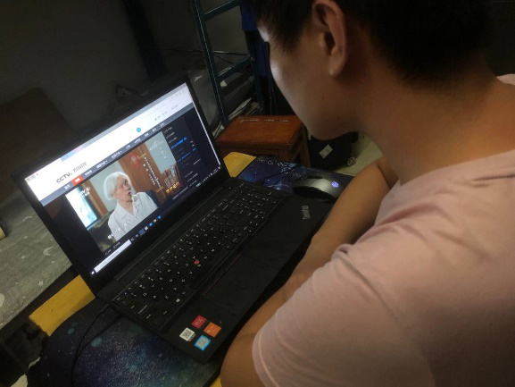的老师同学们准时打开CCTV-4观看纪录片直播。同学们在各个地点开展观看直播活动:寝室里、实验室里、课间十分钟的教室里……