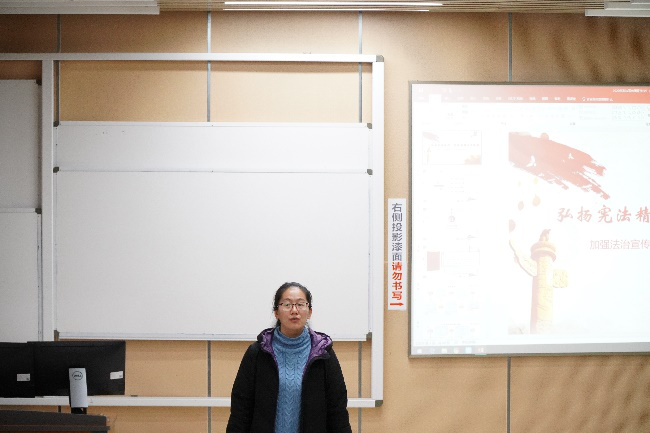 本次主题教育活动为深入学习贯彻党的十九届五中全会精神,宣传中央全面依法治国会议精神特别是习近平法治思想、弘扬宪法精神、维护宪法权威而召开。会议开始吴秀玲老师对宪法的九次修改做出了详细阐述,并对宪法的大致内容进行了详细概括。随后从教育、婚姻、工作、退休等微小方面以点带面深刻揭示了宪法对于个人乃至整个国家社会的重要意义。最后吴秀玲老师以回顾“十三五”经济社会发展成就展望“十四五”规划为结尾表明了国家设立宪法日的重大意义。