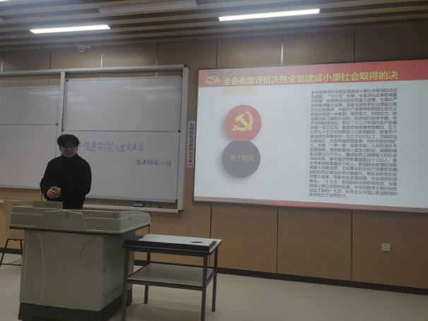 2019级专职辅导员吴秀玲、兼职辅导员冯娟娟组织2019级本科生举行了十九届五中全会精神分享会,本次分享会在综合楼C座405举行,从下午15:40进行至16:40。